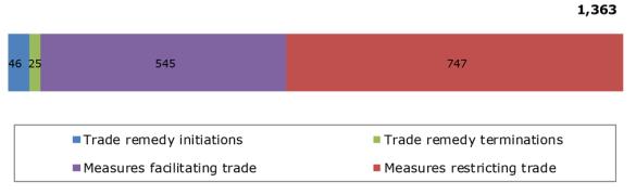 Note: These figures are estimates and represent the trade coverage of the measures (i.e. annual imports of the products concerned from economies affected by the measures) introduced during each reporting period, and not the impact of the trade measures.